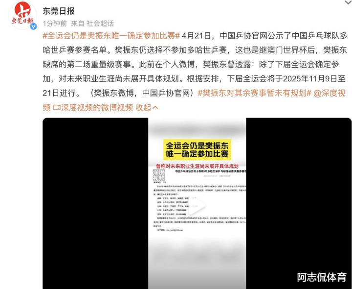 随着事件发酵,权威媒体终于揭开谜底。据悉,樊振东在私人社交账号中早已透露端倪:"需要时间思考未来的路。"可见,樊振东的短期规划:确认参加2025年大湾区全运会